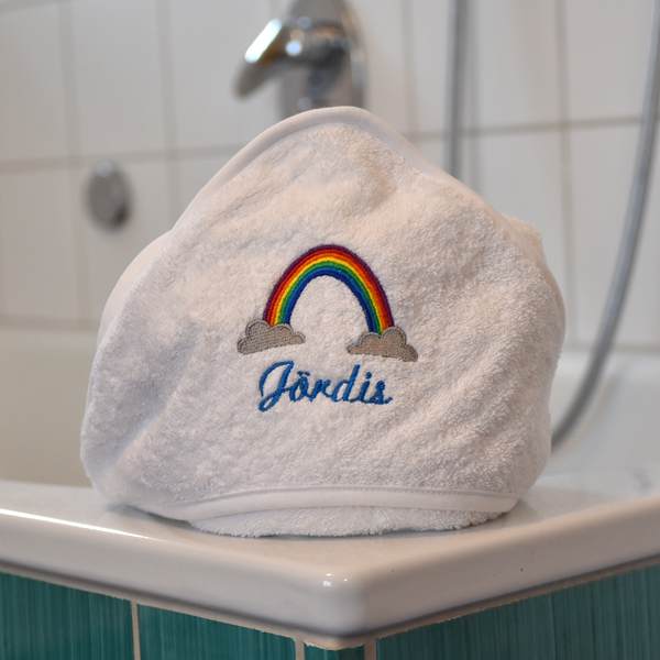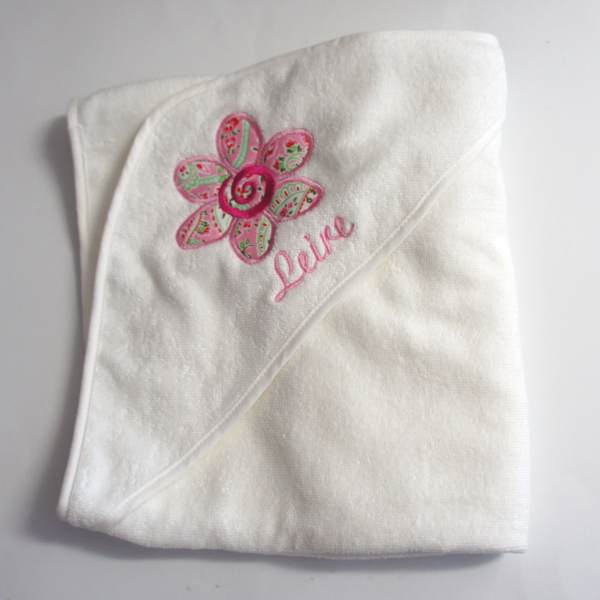 Und sehr beliebt sind die Kapuzentücher für Neugeborenen und Babys.  Mit oder ohne Namen, diese sind für nach dem Baden oder nach Babyschwimmen wahnsinnig praktisch. Sie halten viel aus und werden jahrelang benutzt – auch von den Kleinkinder und Kindern lange nach dem diese Laufen gelernt haben.