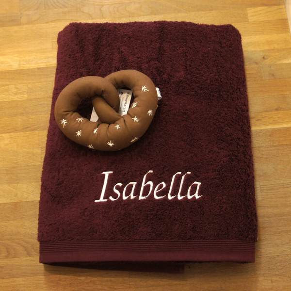 Hier möchte ich zeigen, dass man ein schönes Produkt – ein Badetuch – mit einer Stickerei in ein tolles Geschenk verwandeln kann. Einfach durch eine Personalisierung gewinnt das Handtuch an Charakter – es ist dann unverwechselbar und trotzdem praktisch.