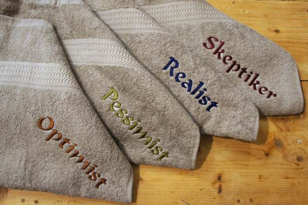 Wenn ich auf das Jahr 2021 zurück blicke, bin ich wirklich erstaunt, was alles zusammengekommen ist. Ich weiß nicht ob ich Optimist, Pessimist, Realist oder Skeptiker bin. Aber ich weiß, dass es mir Spaß gemacht hat diese Badetücher für eine Kundin zu besticken. Sie waren Weihnachtsgeschenke für ihrer Freundinnen. Welches Badetuch passt am Besten zu Euch?