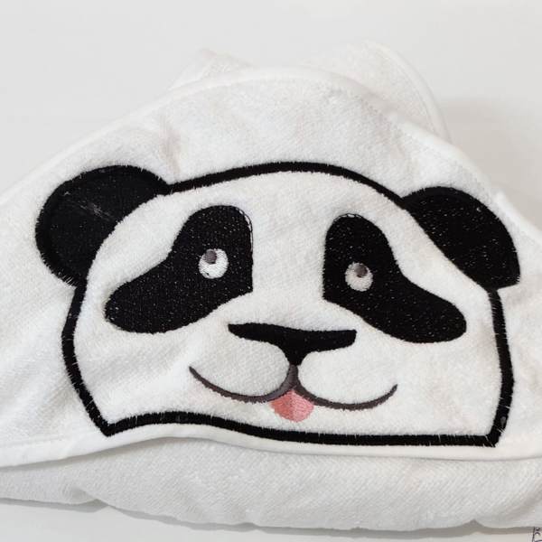 Dieses große bestickte Kapuzentuch Panda I misst 90 x 90cm und ist aufwändig bestickt mit einem Pandagesicht.