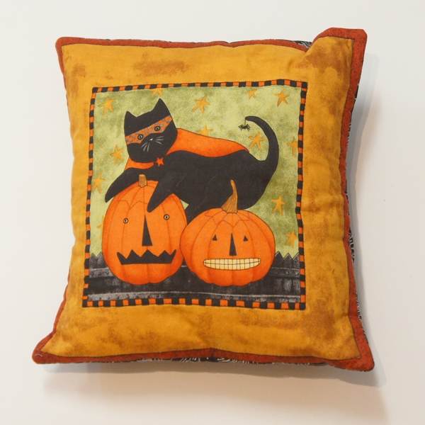 Halloween Kissen mit Katze und geschnitzte Kürbisse