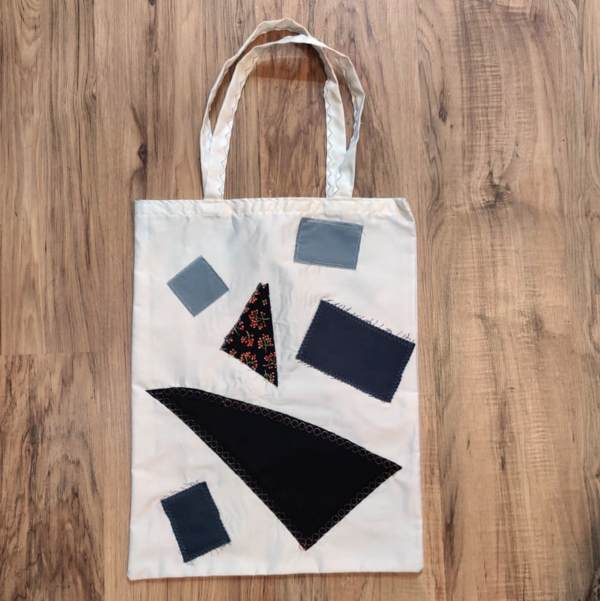 Wir nähen eine Trageasche aus weißen Baumwollstoff mit Deko-Aufnäher. Die Tasche ist so groß wie die allgegenwärtige Jutetaschen, die man vom Supermarkt kennt, und ist gut geeignet für Bücher, Schule, Sport, Einkaufen und Alltag!