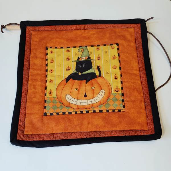 Ein Halloween Wanddeko mit Kürbis und Katze. Perfekt für auf die Wohnungstür im Monat Oktober! Einfach aufhängen und fertig!